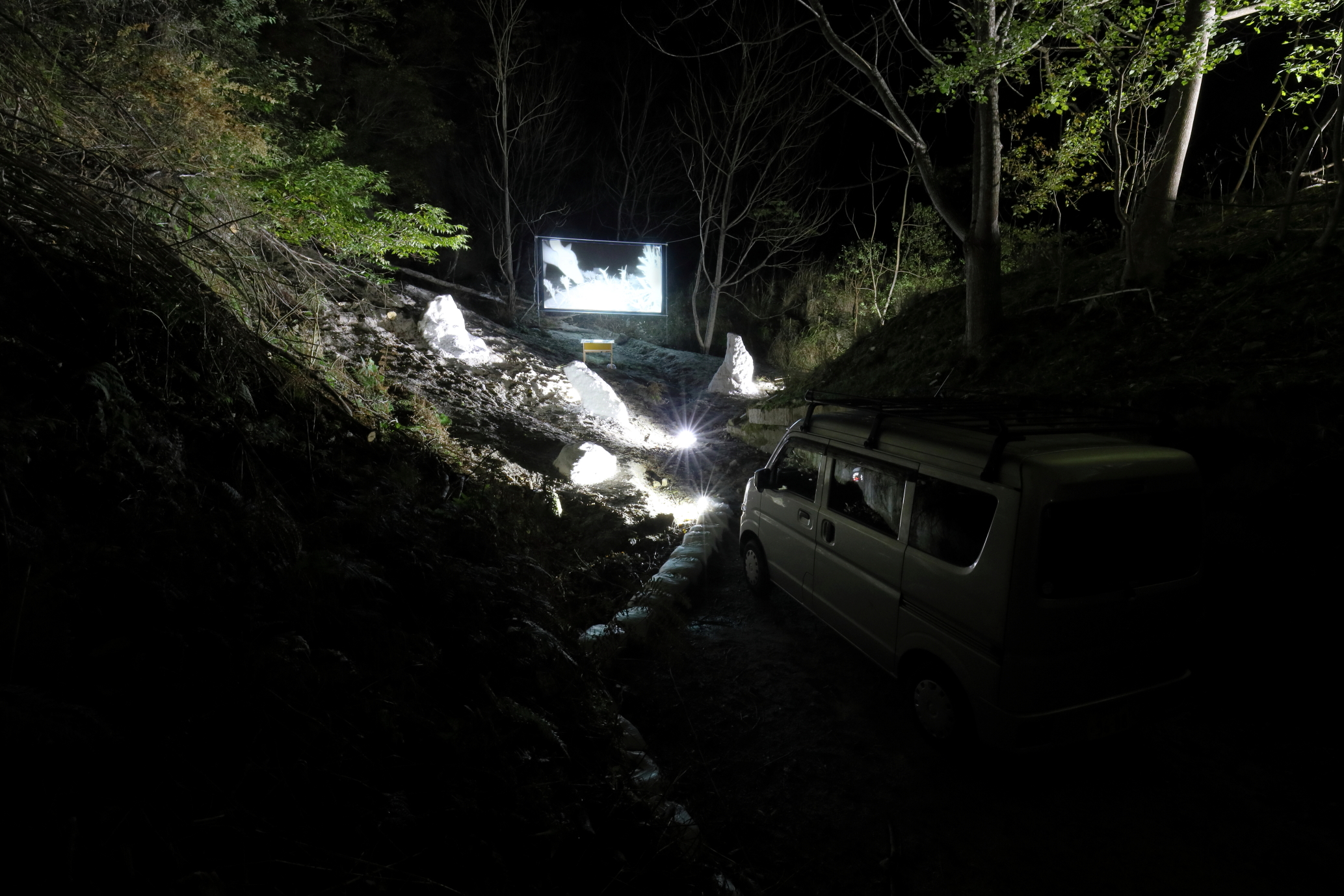Installation view of Drive-in exhibition The Analogical Mirros, Shiga, 2020