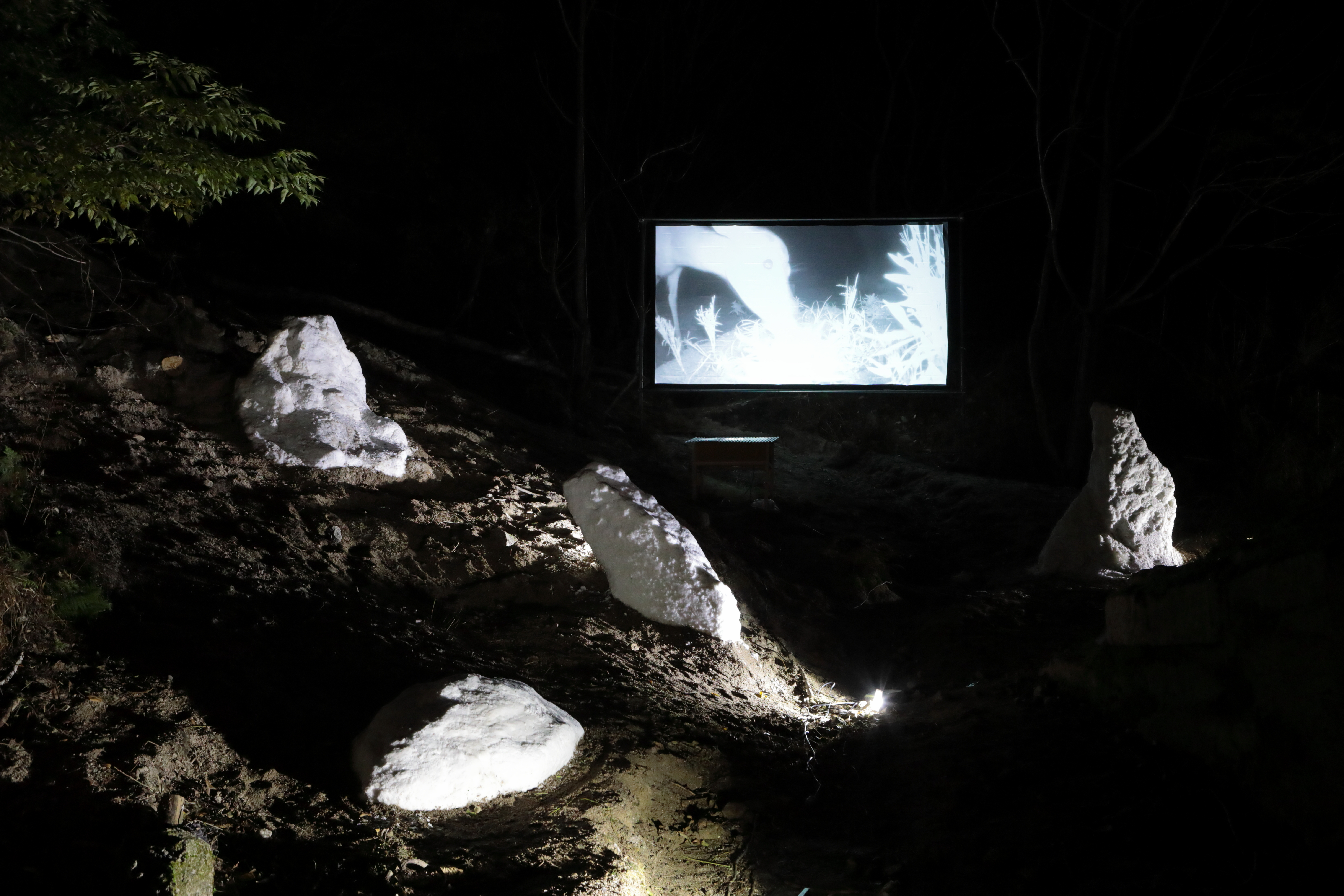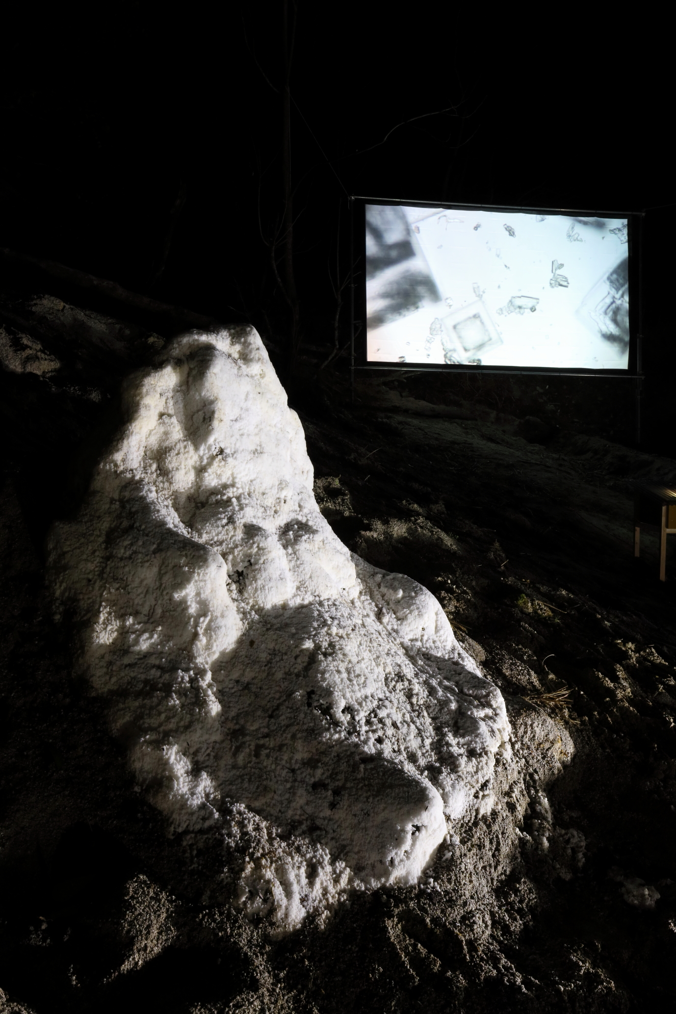 Sodium chloride, De-icer(Calcium chloride), Shirakawa sand,Video, duration 6min51sec (Loop)